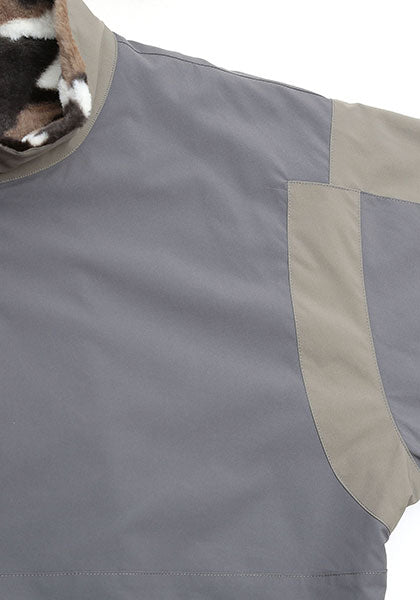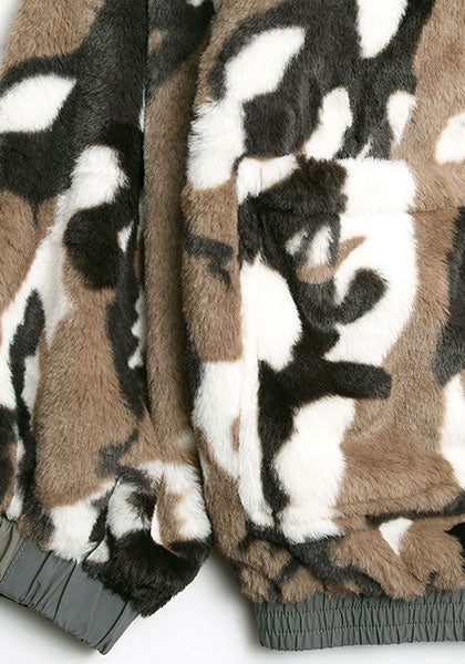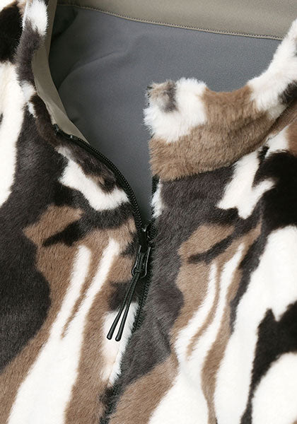 肌触りのよい別注カモ柄ボア生地とのリバーシブル仕様としたアウター。