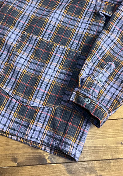 素材にはポリエステル×レーヨンのチェック柄デッドストック生地を採用。