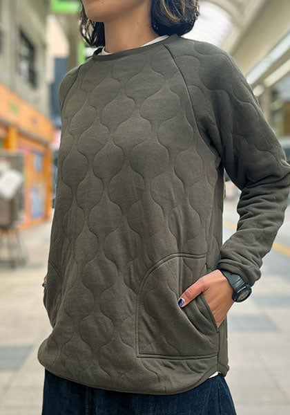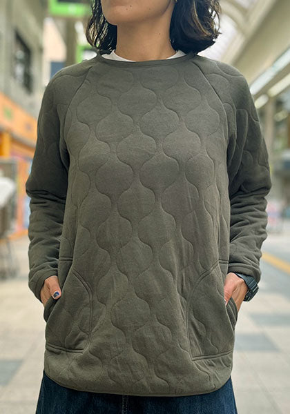 肌触りが良く、ふんわりと包み込むような着心地が魅力の「ミリタリーキルトクルー」