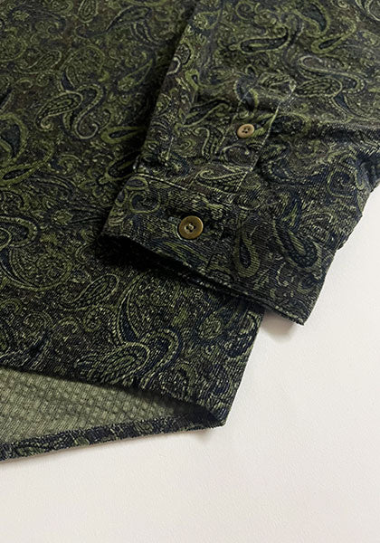 貴重なデッドストックファブリックを使用したコーデュロイペイズリー柄シャツ。
