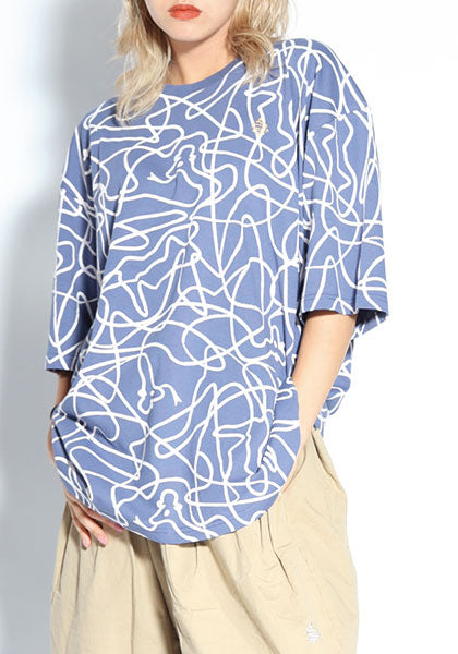 ブランドアイコンでもあるヘビモチーフが組み込まれたグラフィックで製作した、1枚で着こなしても存在感のあるデザインの総柄ビッグTです。
