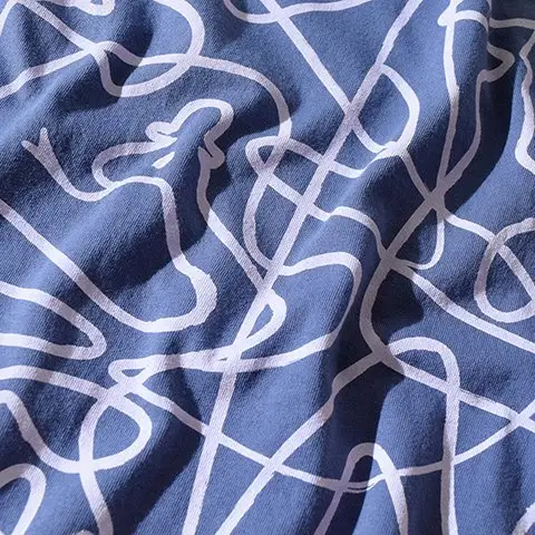 生地にはプリントに使用した顔料によるハリが出ており、硬さのある素材感となっています。