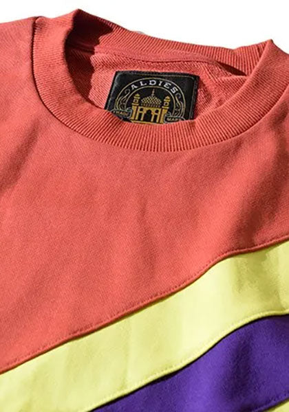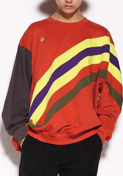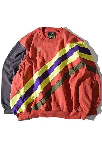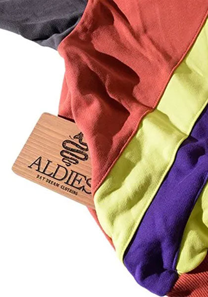 ALDIESが得意とする細やかな生地の切り替えで魅せる手法を取り入れたオリジナリティ溢れるレインボー配色の切り替えがポイントのビッグスウェット。