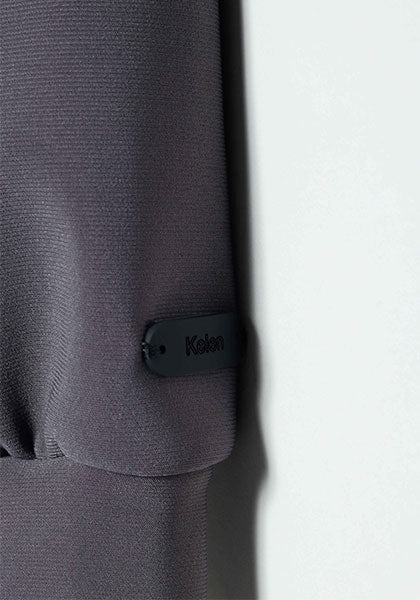 内側に起毛をかけた微光沢感のあるポンチ素材と両面フリースをかけあわせたデザインカーディガン。
