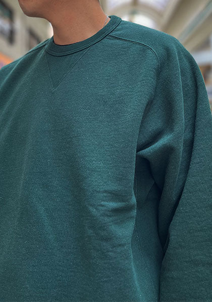 ビンテージのスウェットの見た目の重量感はそのままに、実際に着用した時の軽さを追求したオリジナルの裏起毛素材スウェット。