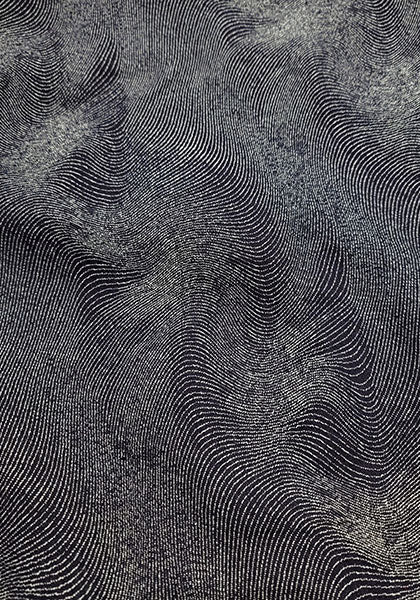 通常のインディゴデニムとは一線を画す” 等高線”さながらのジャガード織り模様が特徴。
