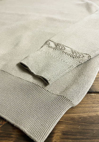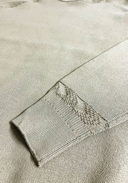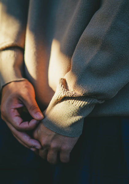 袖口には編み地切り替えを入れニットならではの表情をさりげなくプラス。