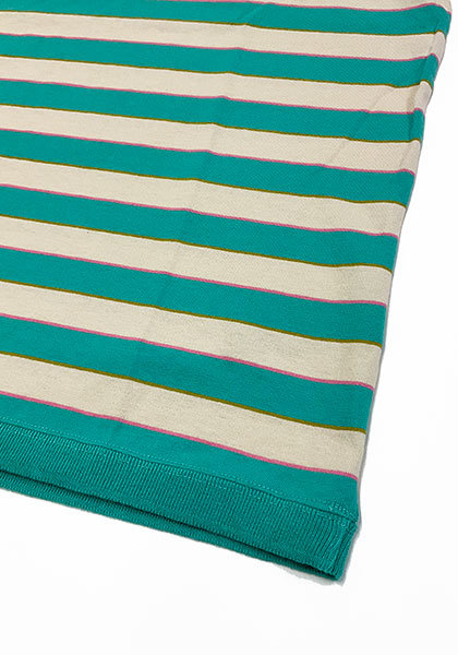 アルコール飲料のパッケージデザインをモチーフとした配色で、空紡糸を染めて編み上げたオリジナルボーダーTシャツです。