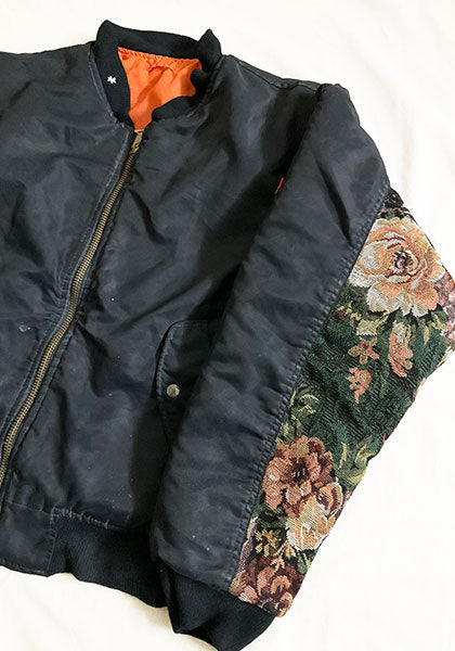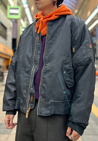 ミリタリーの定番・MA-1をベースに、染め・ブリーチ・ダスティ加工を極限まで施した一着。