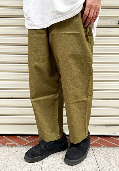 光沢感のあるコットン素材のジャガード生地で作られた日本生地使用SUNDAY PANTS。