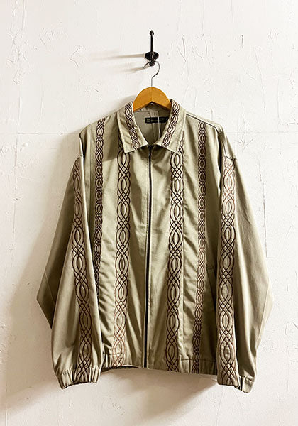 デザイナー自身の膨大なコレクションの中から刺繍デザインをサンプリングしたドリズラージャケット。