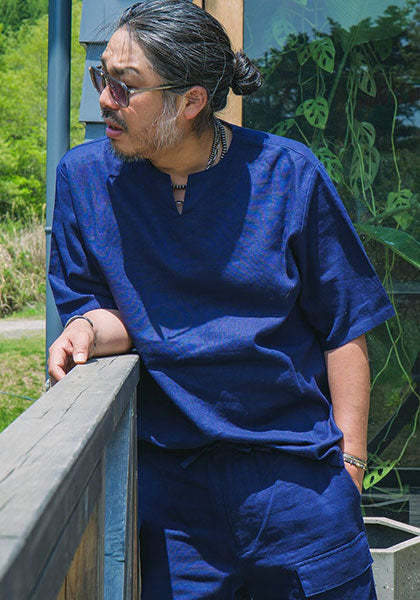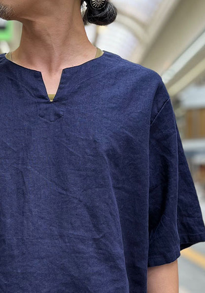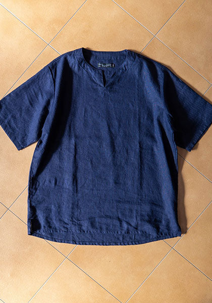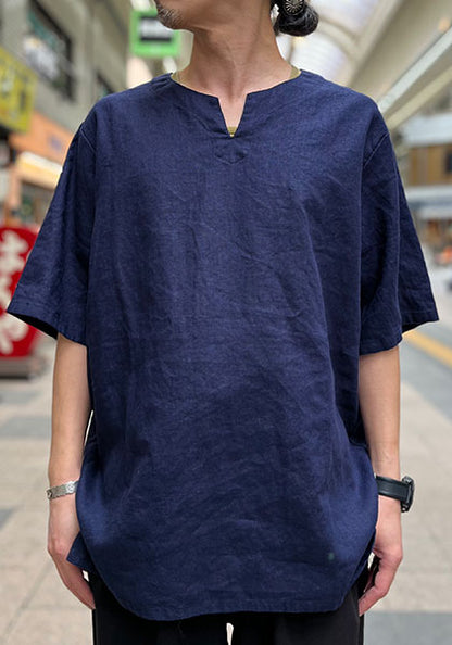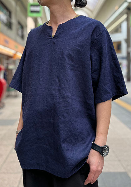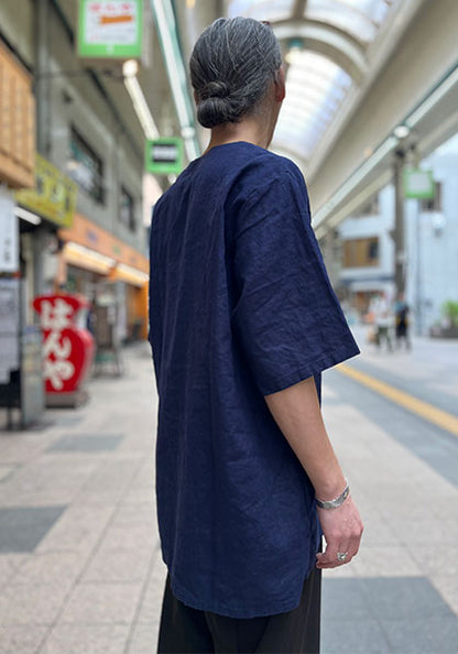 一枚着はもちろん、羽織りのインナーとしても活躍する万能なリネンシャツ。