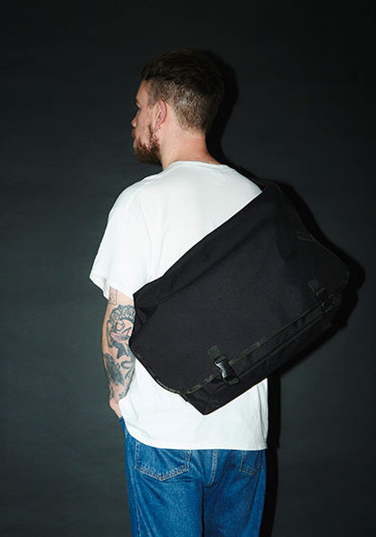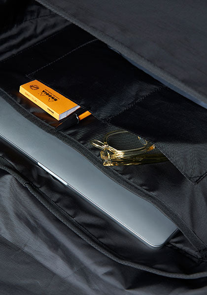 従来の定番生地よりもきめ細かく、上品な光沢感のあるナイロンキャンバス素材を採用。