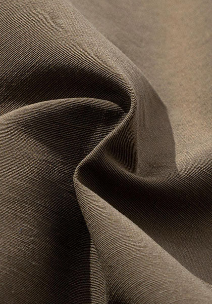 薄手の軽い生地感ながらシワになりにくいしっかりとした地合いで、綿の柔らかさとナイロンのシャリ感のバランスの良さが特徴です。
