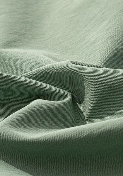 薄手の軽い生地感ながらシワになりにくいしっかりとした地合いで、綿の柔らかさとナイロンのシャリ感のバランスの良さが特徴です。