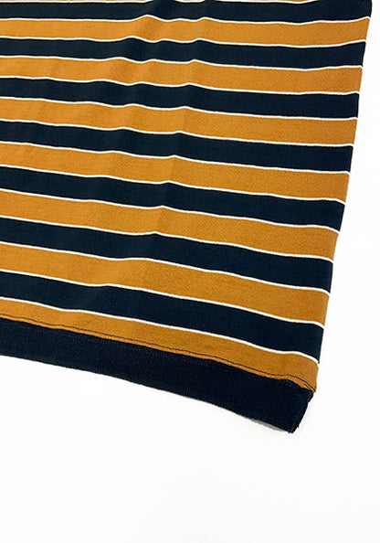 アルコール飲料のパッケージデザインをモチーフとした配色で、空紡糸を染めて編み上げたオリジナルボーダーTシャツです。