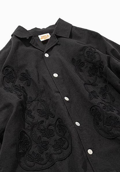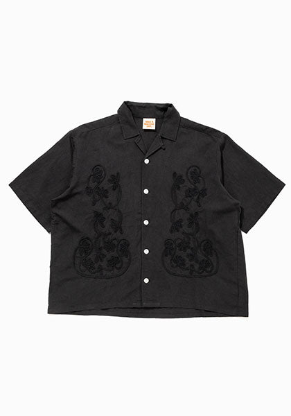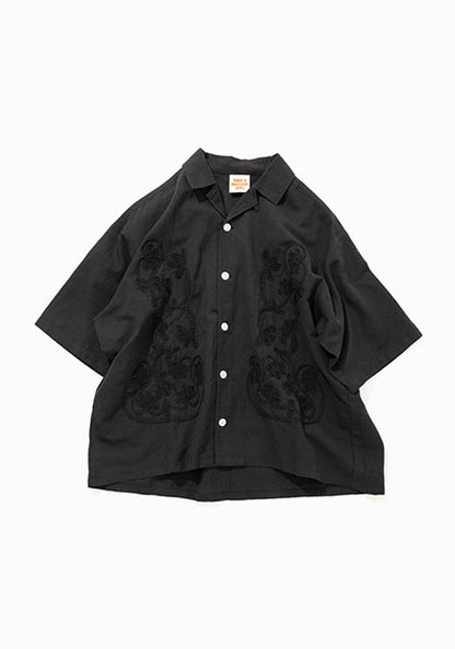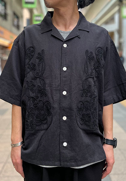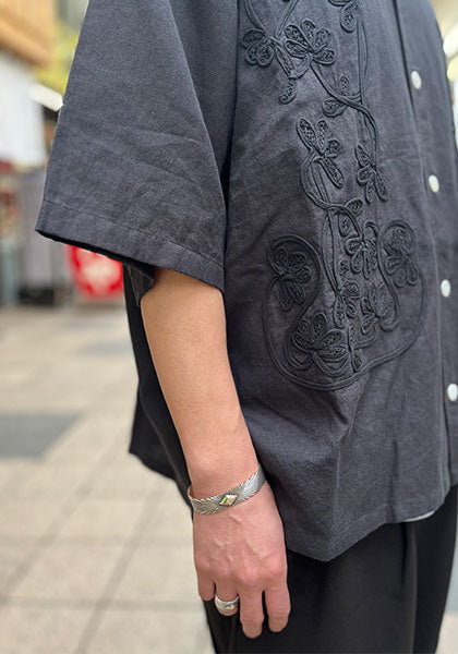 清涼感のあるコットンリネン生地をベースに同系色のコード刺繍が印象的なワイドシャツ。