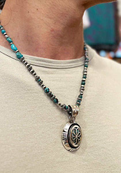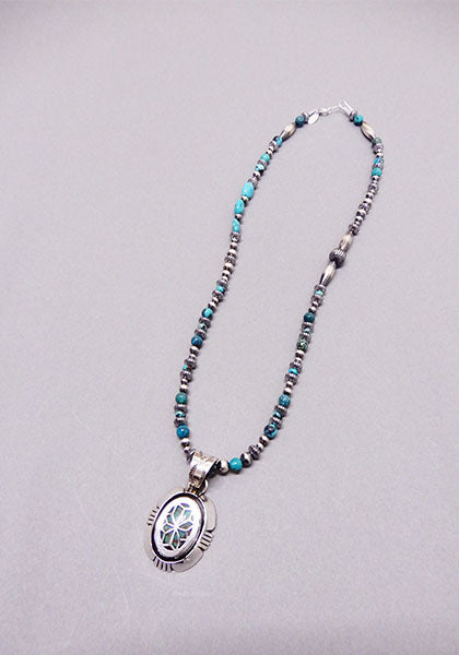 ナバホパール、ナバホメロンビーズ、ヘマタイトを組み合わせて仕上げた職人技。