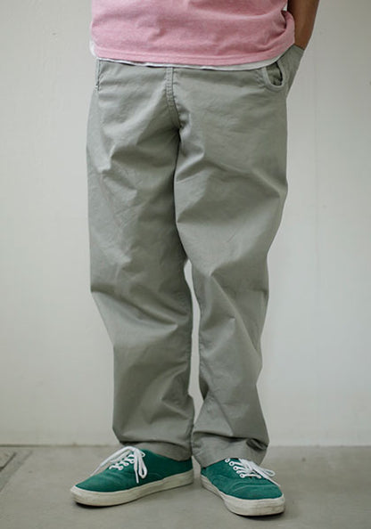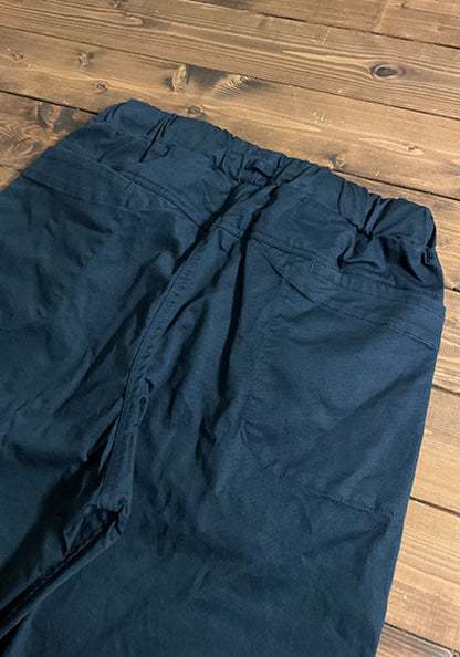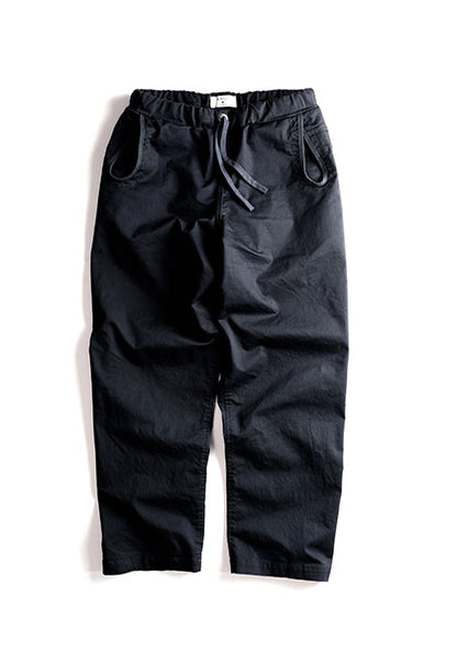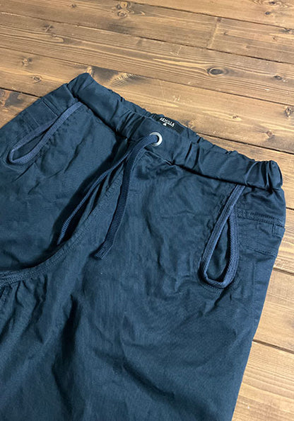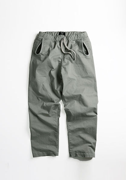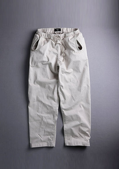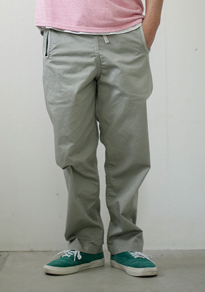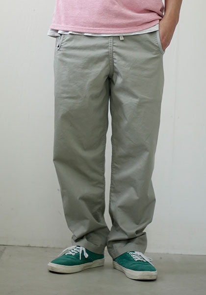 シルエットは、少しだけワイドなストレート。ウエストにはゴムと紐が付くイージーパンツ仕上げになります。