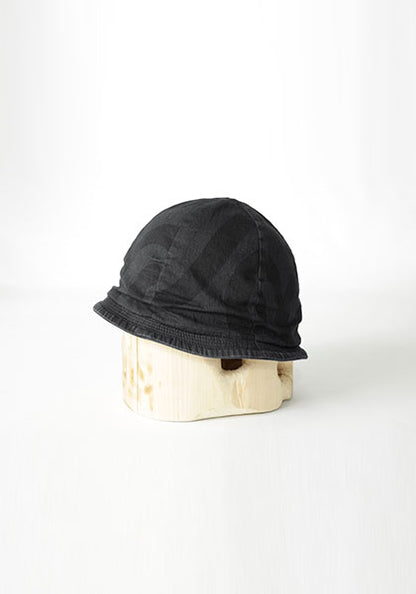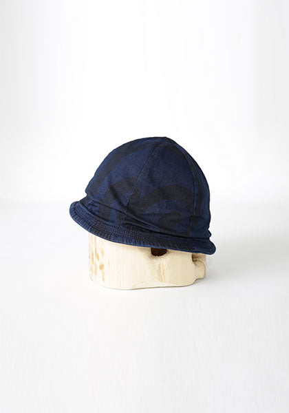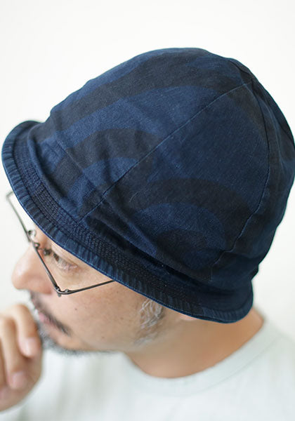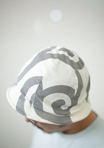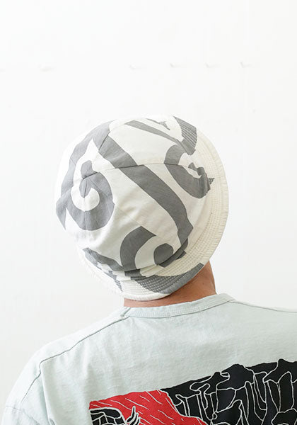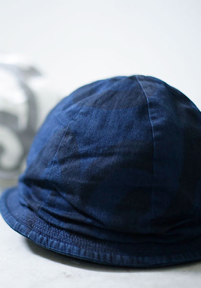 6ozデニム生地にロゴを手捺染し、縫い合わせる事で縄文土器のような文様になったダレルハット。