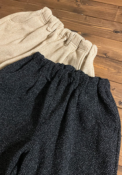 素材の持つ肉厚でありながらトロみのある質感は、まさにスラックスの様相を醸した仕上がり。