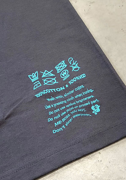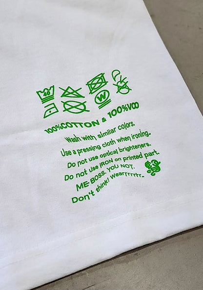 左スソには、品質表示を兼ねたデザインロゴプリント入り。