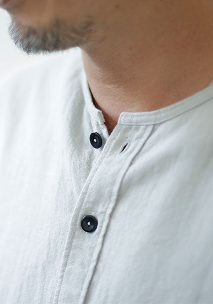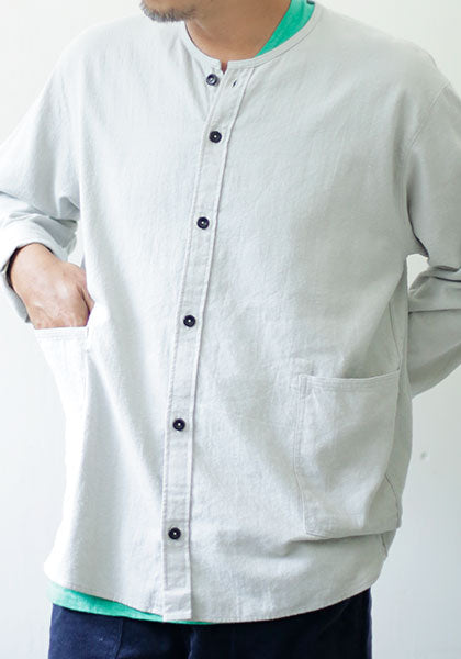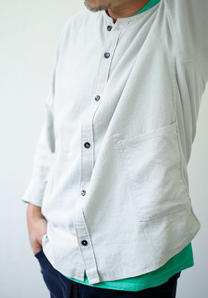 シャツのようでいて、カットソーのようなリラックス感も感じられる一着です。