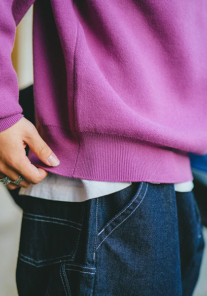 スウェットでは出せない編み目のニュアンスがちょうどいいアクセントになってくれます。