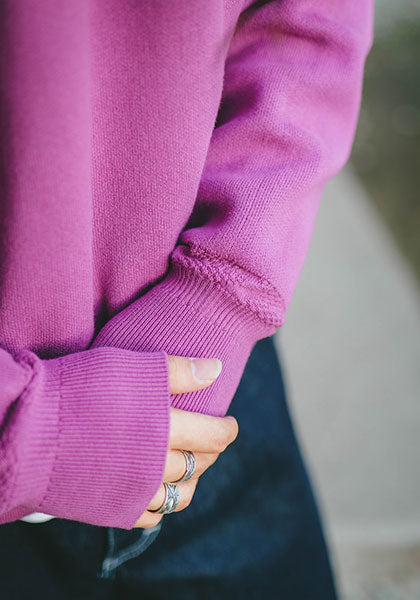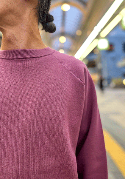 その絶妙なラインを追い求めて、見た目はクラシックなラグランスウェットのムードに