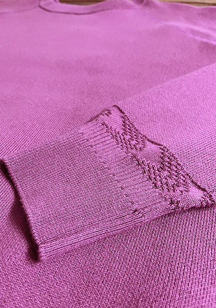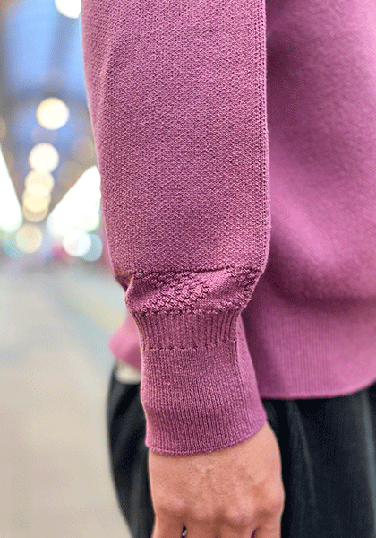 袖口には編み地切り替えを入れニットならではの表情をさりげなくプラス。